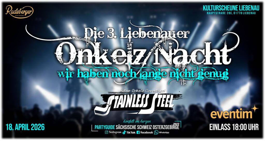 Am Samstag, 18. April 2026 steigt in der Kulturscheune Liebenau die nächste Runde der legendären Onkelz-Nacht!